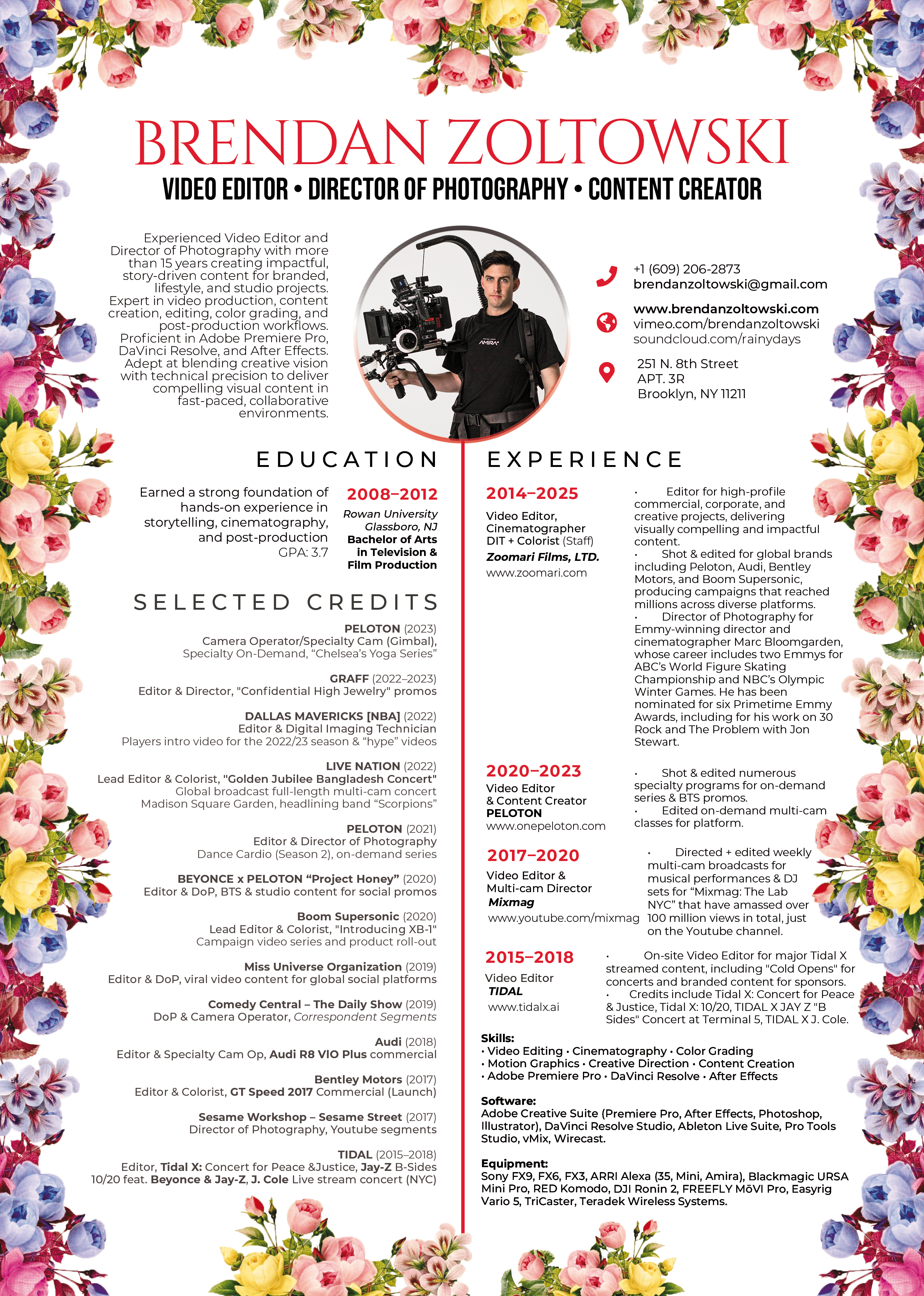 Creative video professional with 15+ years of experience creating impactful, story-driven content across branded, lifestyle, and studio environments. Blending creative vision with technical expertise, I deliver polished work from capture to final cut in fast-paced, collaborative settings.